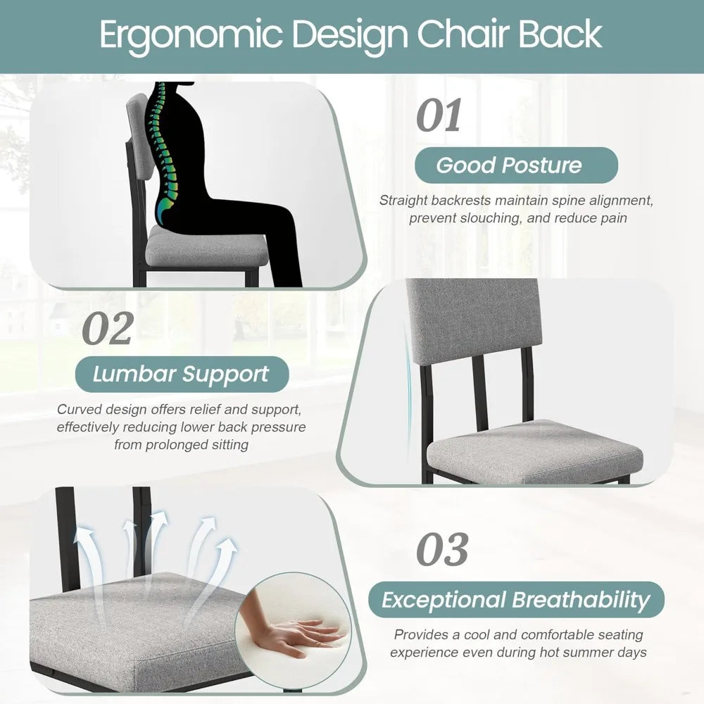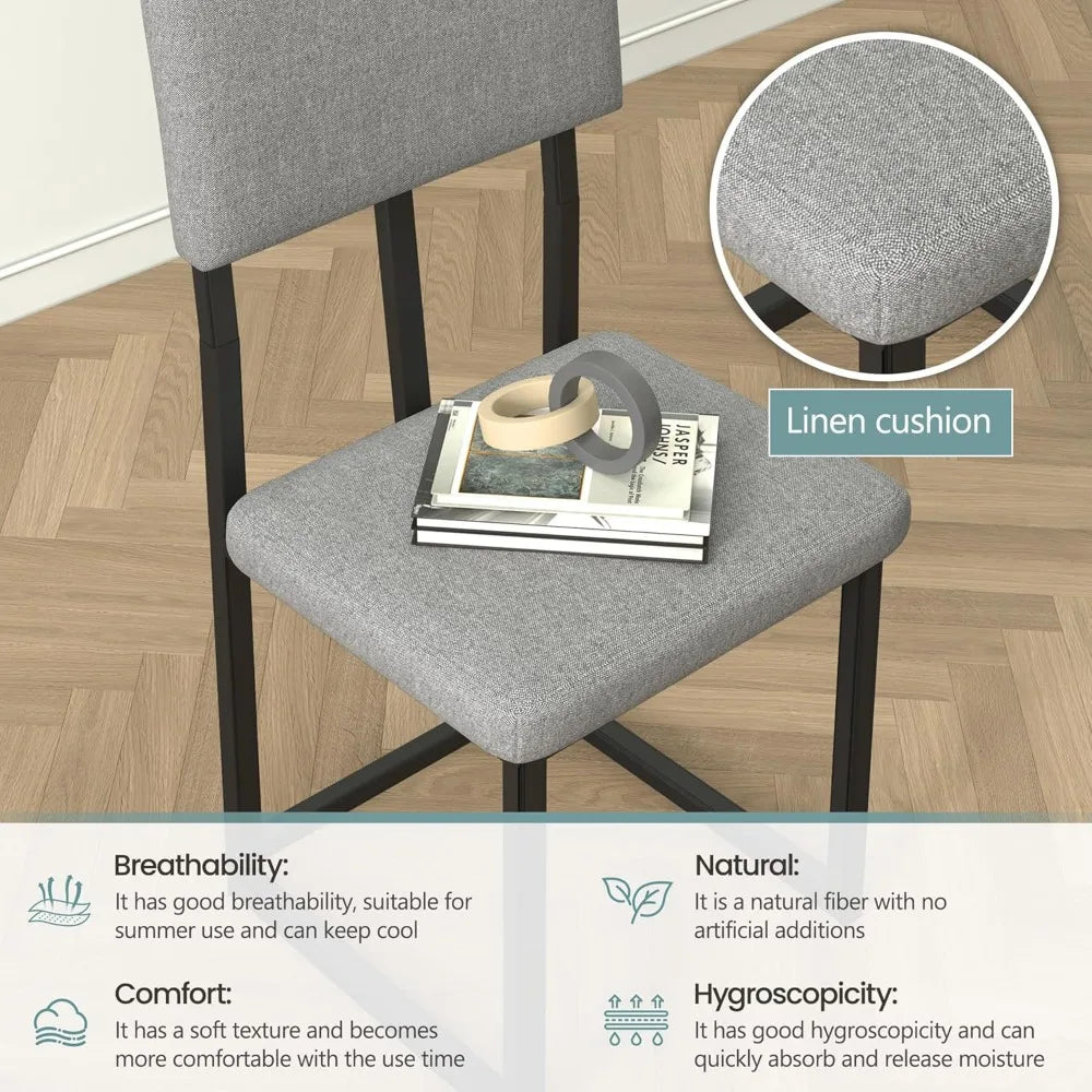 - COMFORT-FOCUS SEATING: You’ll enjoy lasting comfort with linen-upholstered chairs, featuring high-density foam and breathable gray fabric for skin-friendly seating.