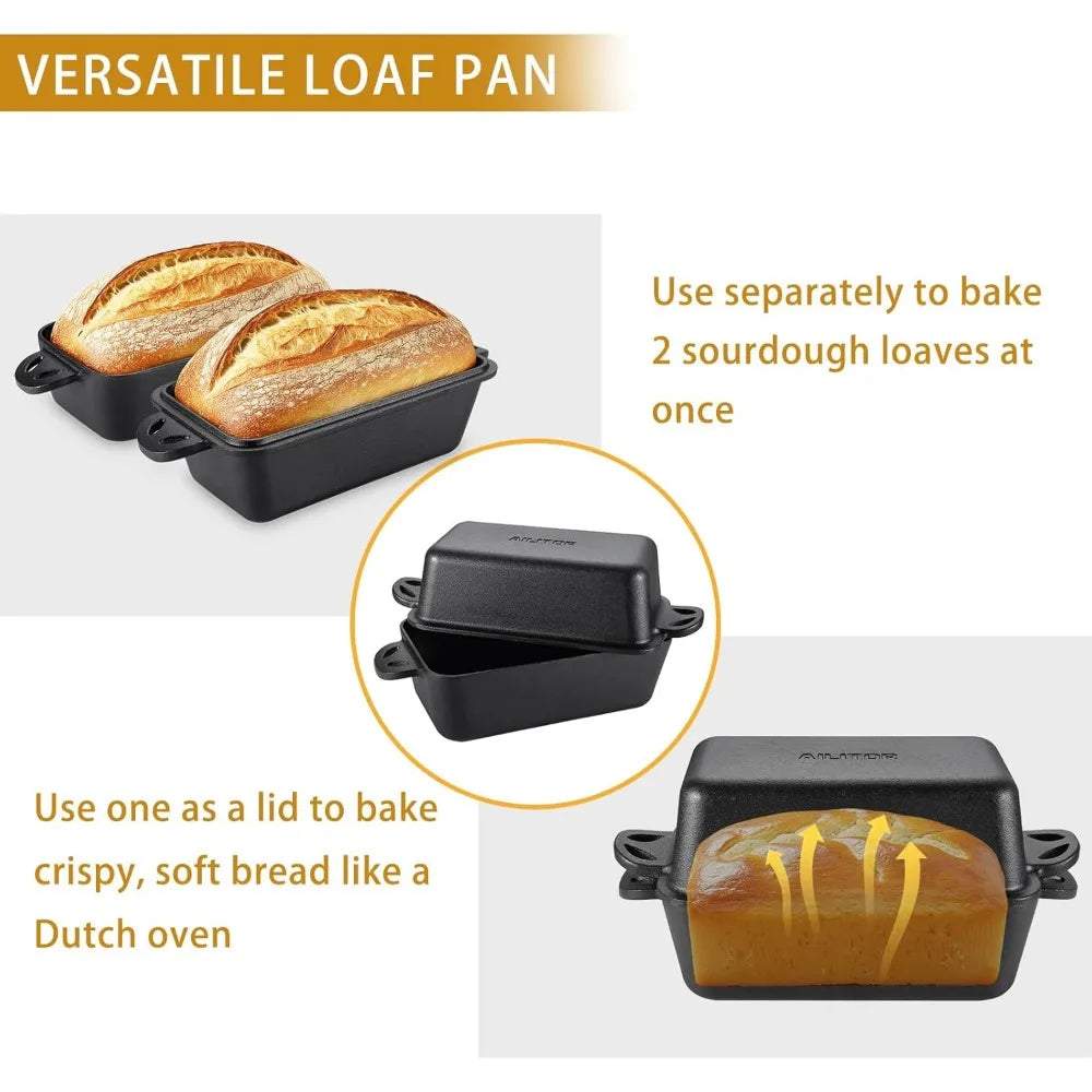 Unlock bakery-grade results at home with this versatile cast iron loaf pan set that can function as both a standard loaf pan and a lid for a Dutch oven-style bake.