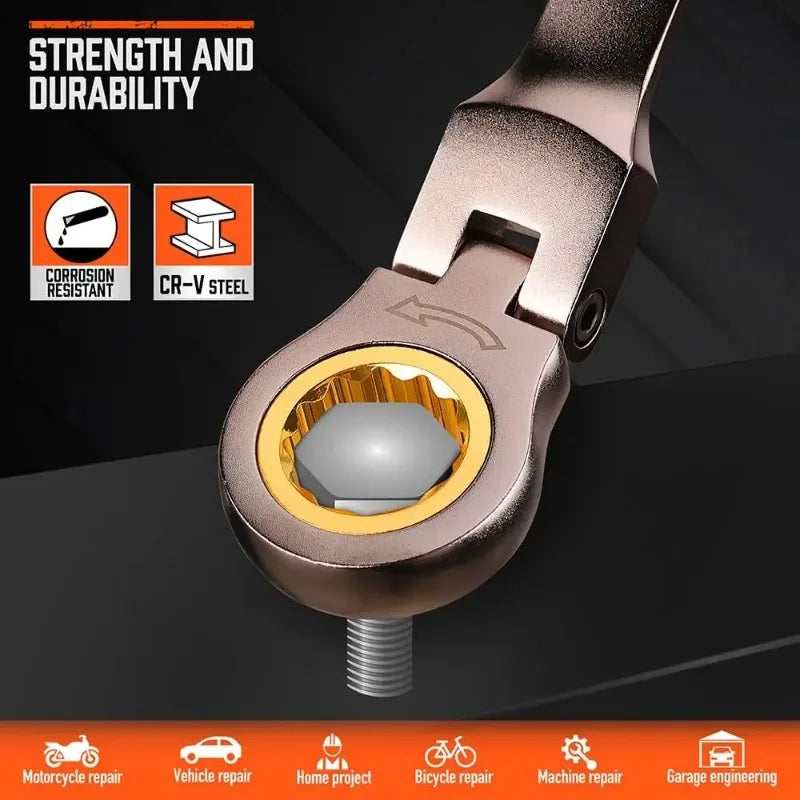 - Reach into tight spaces with a 180-degree flex head and a 72-tooth ratchet that lets you move to the next tooth with only about a 5-degree swing.