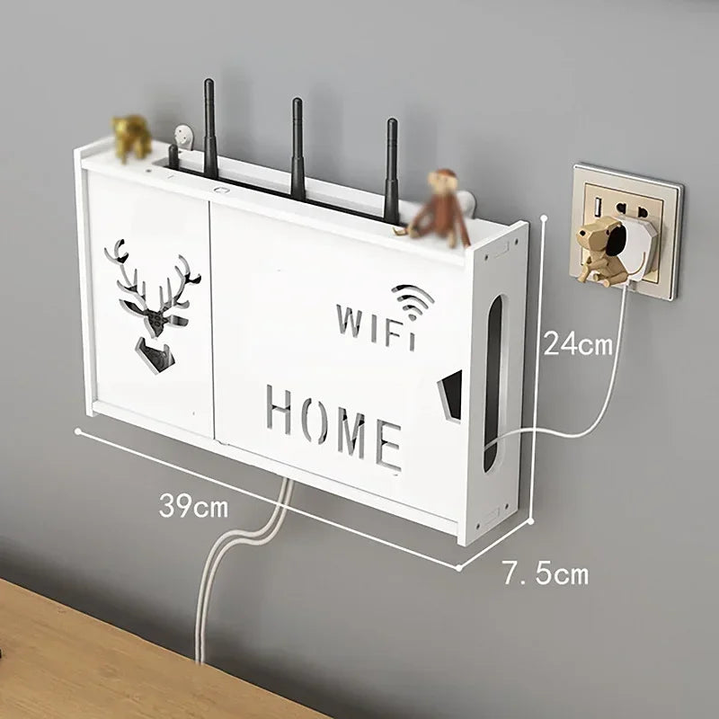 Wall Mounted Router Shelf Storage Box Punch Free Cable Management