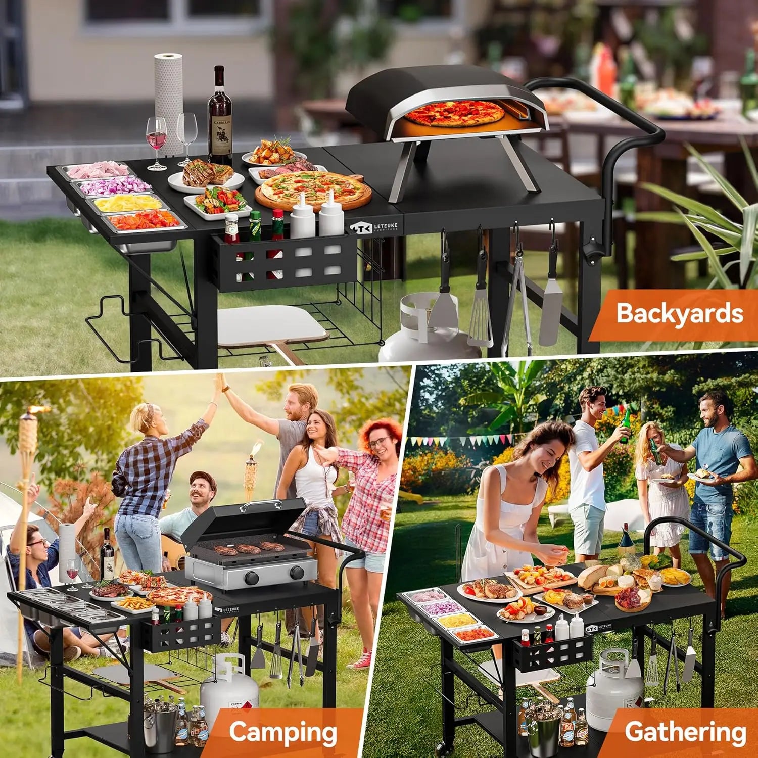 Universal Outdoor Pizza Oven Cart With Wheels And Storage