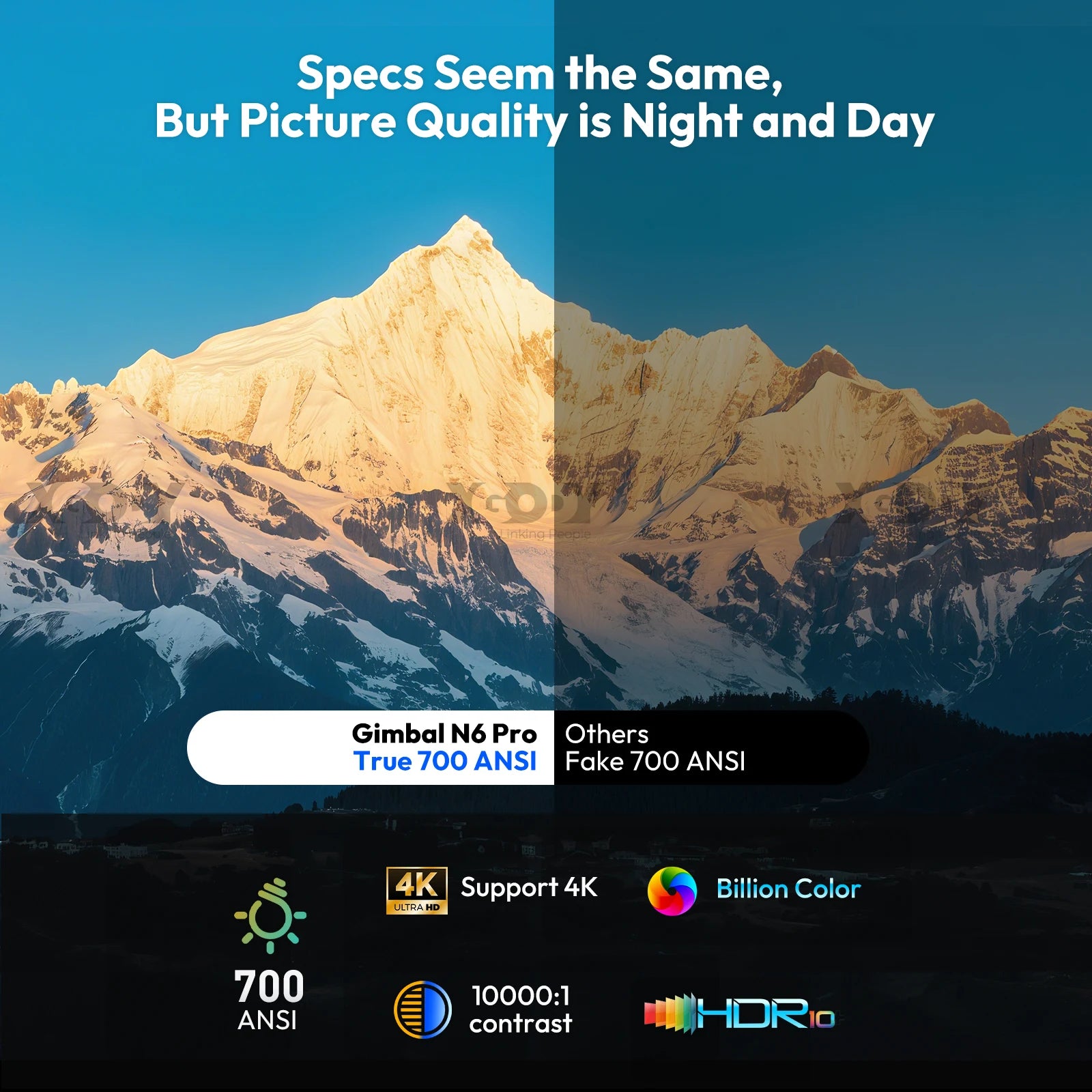 【Say goodbye to dark screens | 700 ANSI | 4K Support】This latest mini projector from 2025 features a native Full HD resolution of 1080p and a brightness of 700 ANSI lumens. The 4K TV projector displays over 50% more details more vividly than other projectors with 1080p support, and 4K support takes video quality to a new level. Experience a vivid and immersive visual experience. |